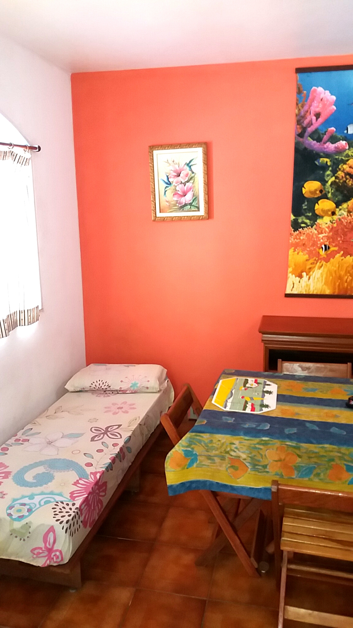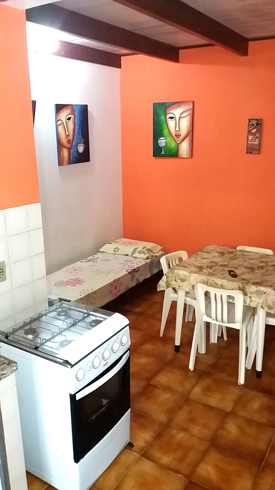 Térreo: sala com 02 camas de solteiro, cozinha e 01 banheiro 02 janelas frontais;